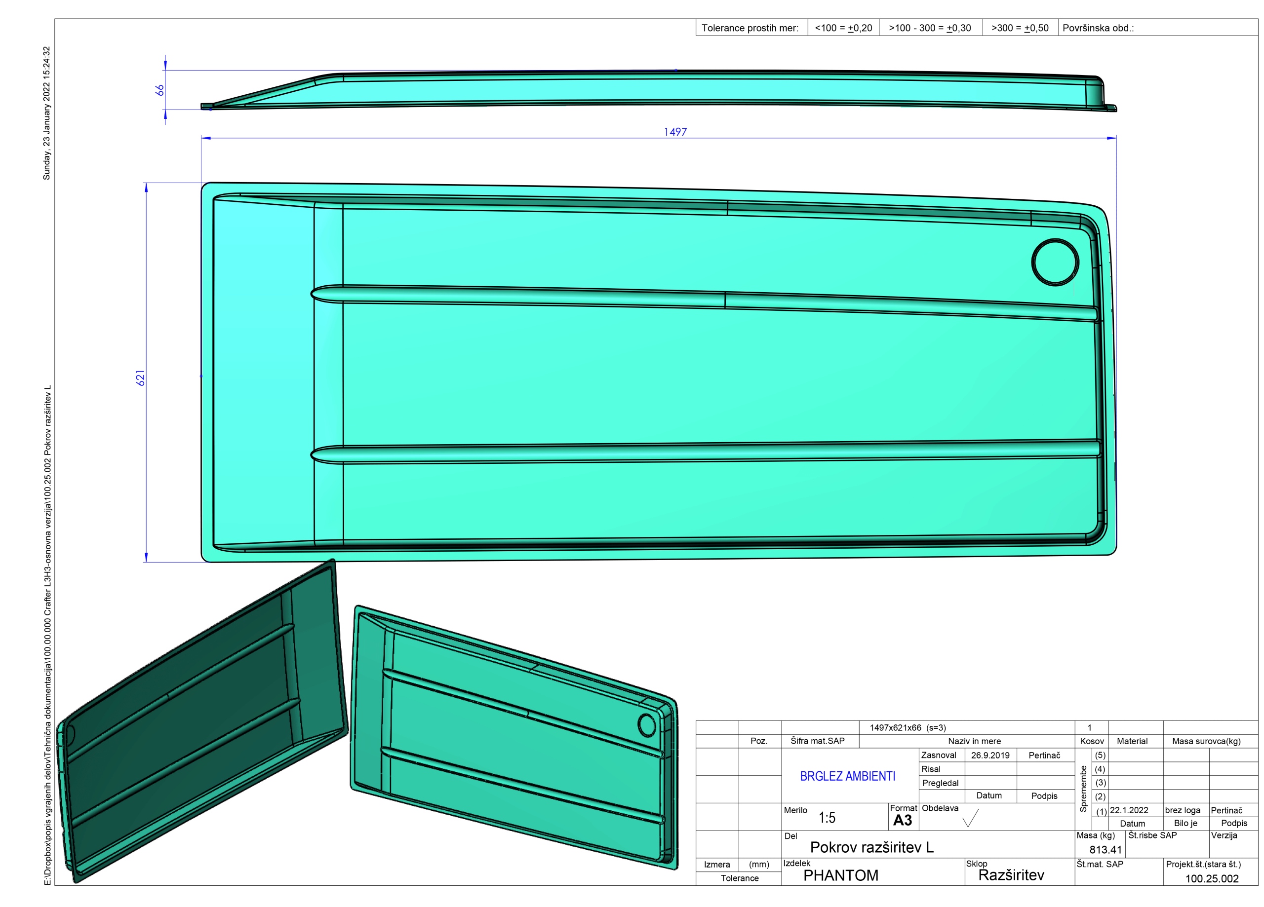 Dimensions 1000 × 20 × 20 cm