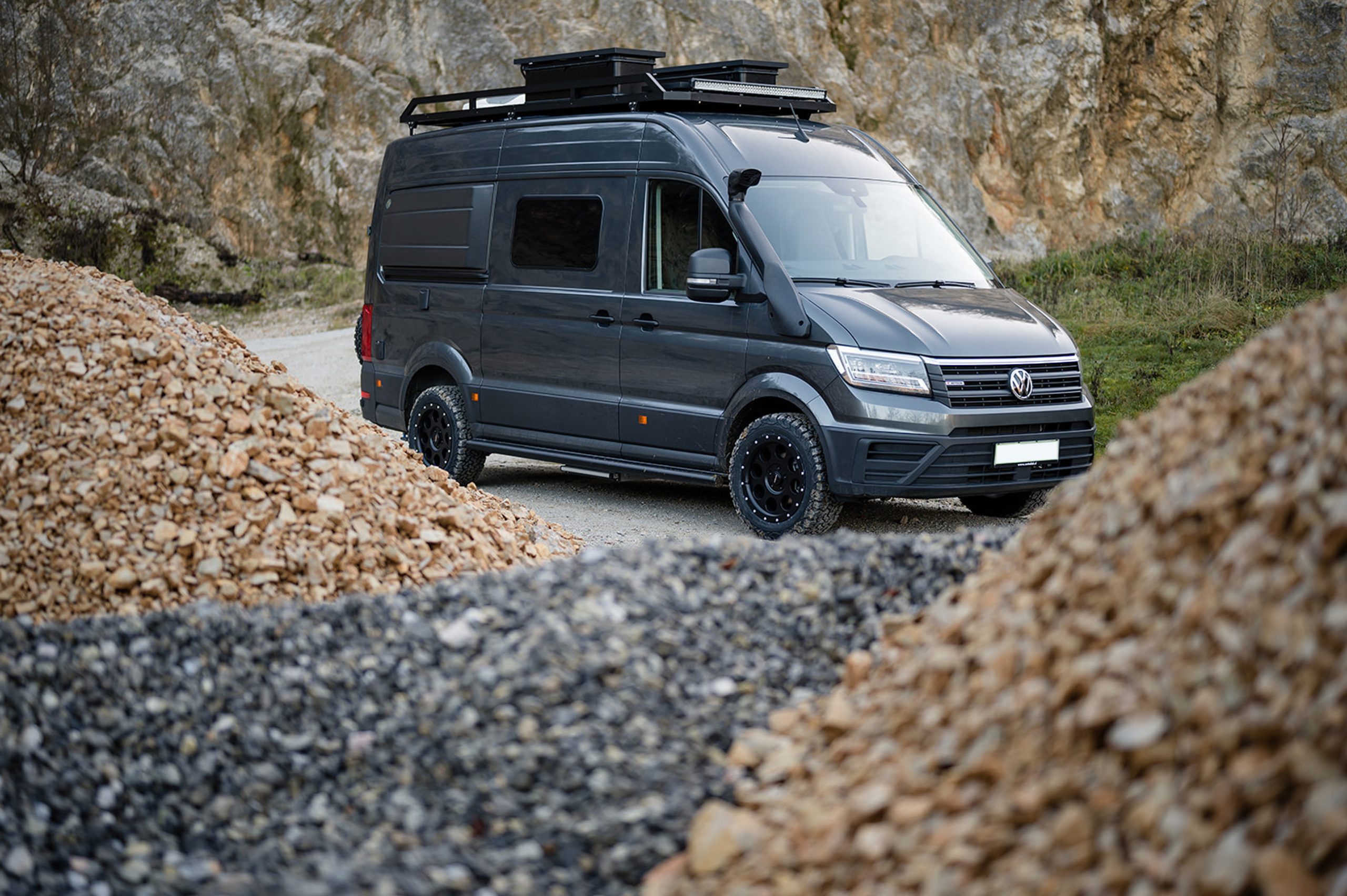 Lightweight and durable side carbon-fibre extension for a VW Crafter, designed for maximum interior space.